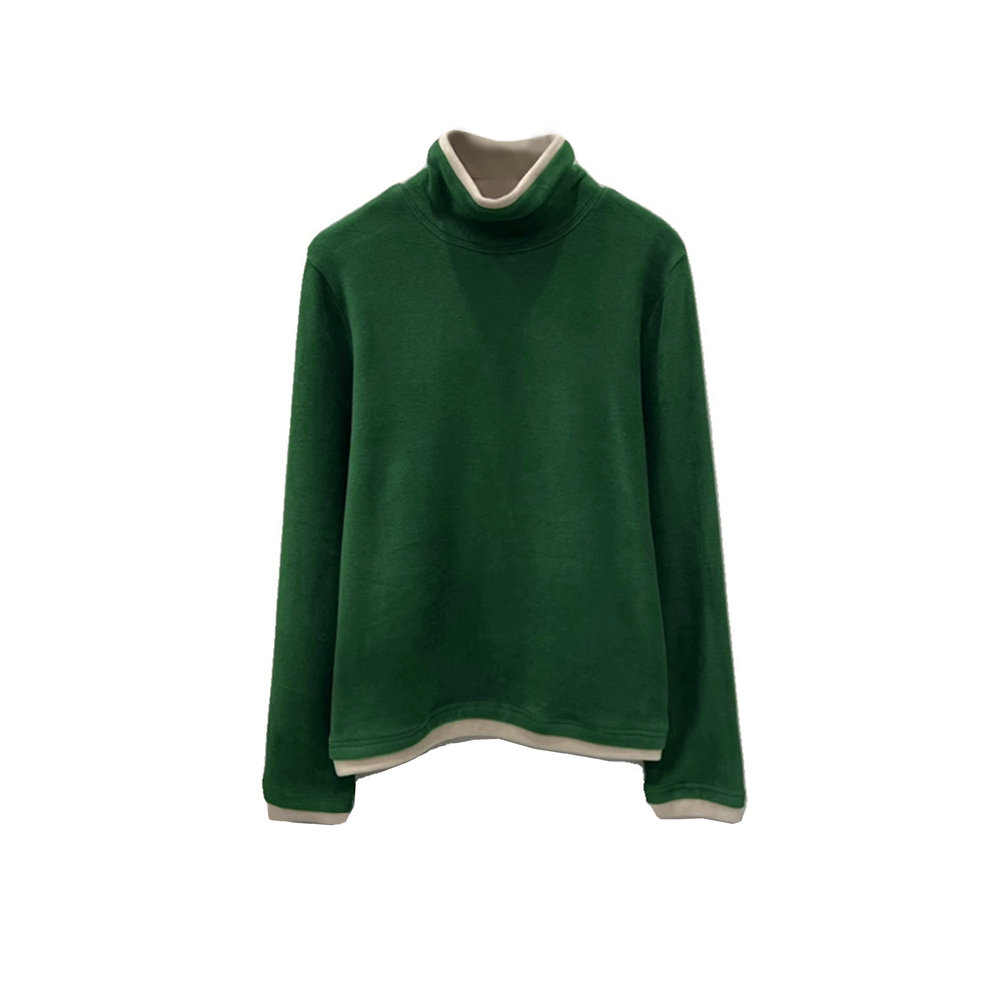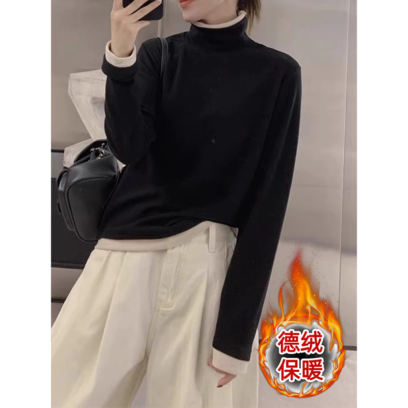 打底衫 秋冬季 高领假两件设计感德绒长袖 上衣撞色女装 遮肉显瘦 新款