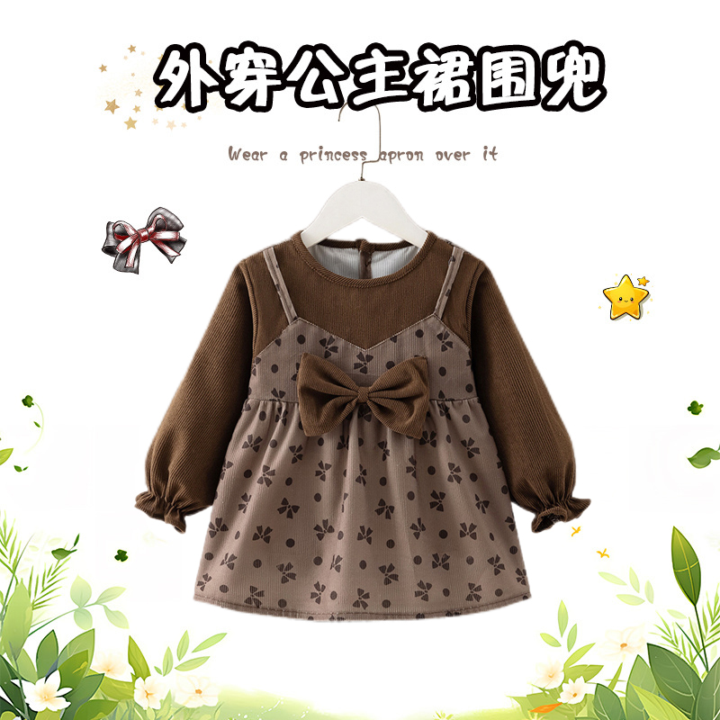 幼儿长袖 吃饭衣宝宝秋冬外穿罩衣女孩洋气公主裙防水防脏围兜