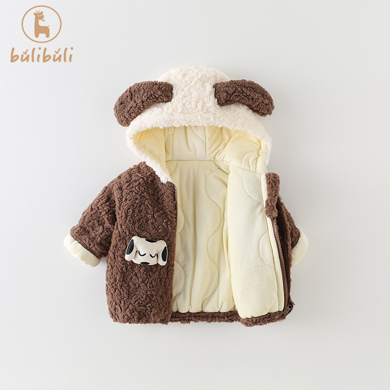 连帽上衣冬季 卡通儿童衣服女宝宝加绒厚短款 2024新款 男童外套冬装
