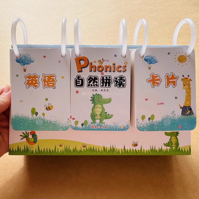 英语自然拼读卡片phonics英语台历翻翻卡入门进阶英语单词发音零基础小学英文单词自然拼读英语教材自然拼读法线圈日历翻翻卡教具