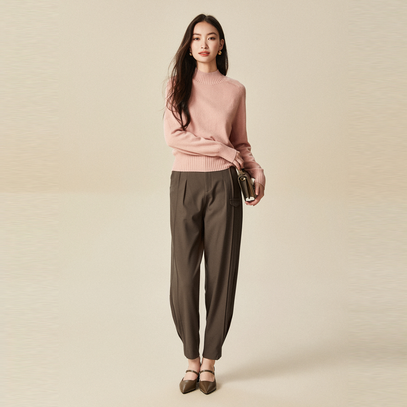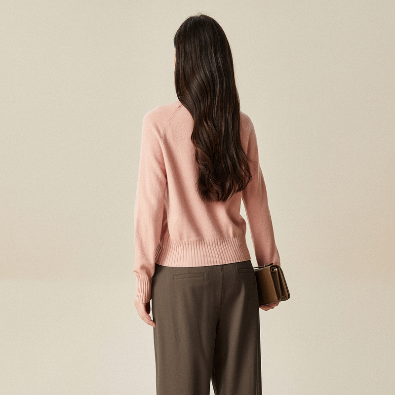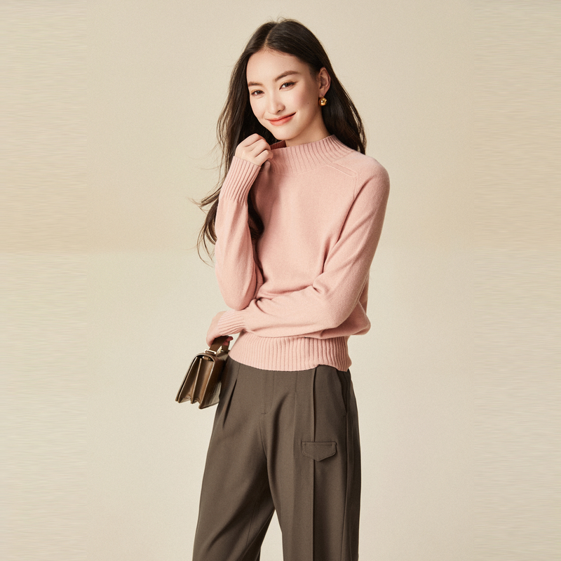 毛针织衫 浅粉色绵羊毛套头毛衫 时尚 新款 女 冬季 XG雪歌螺纹拼接长袖