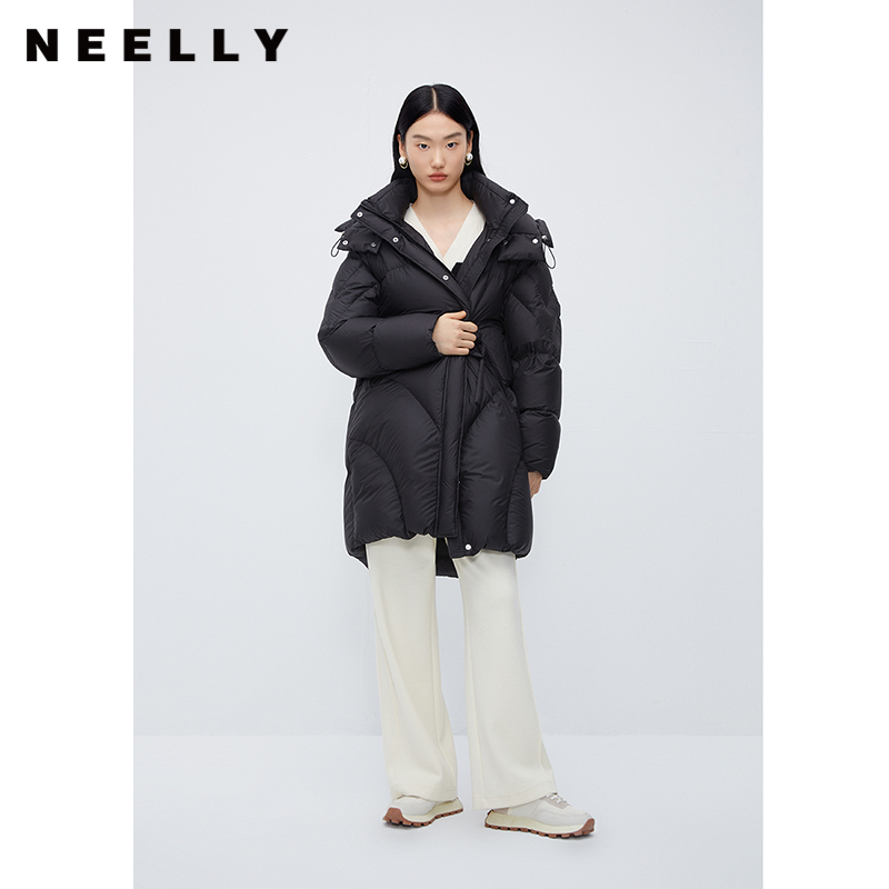 蓬松白鸭绒外套 连帽羽绒服女设计感时尚 NEELLY纳俪商场同款 中长款