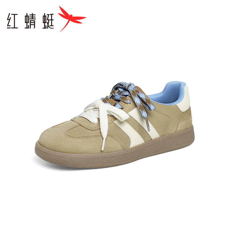 女2025春季 运动跑步鞋 新款 平底复古休闲板鞋 女鞋 红蜻蜓奶油德训鞋
