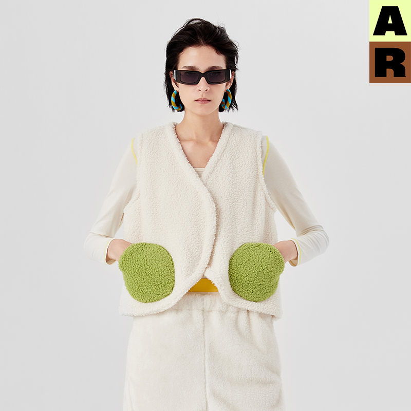 AR原创双面珊瑚绒马甲家居服可外穿秋冬女显瘦百搭ins潮r线基础线
