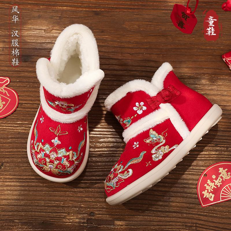 布鞋 女童汉服鞋 民族国风宝宝老北京手工唐装 古装 子古风儿童绣花鞋