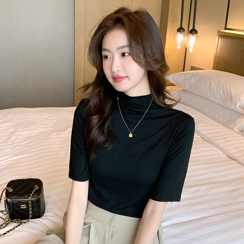 女胖mm半高领内搭半袖 t恤春秋新款 打底衫 五分袖 上衣 大码 短袖 中袖