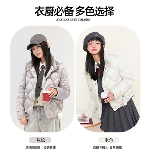 波司登巴恩风25秋新款 翻领外套 女轻薄羽绒服复古风有光泽菱格短款