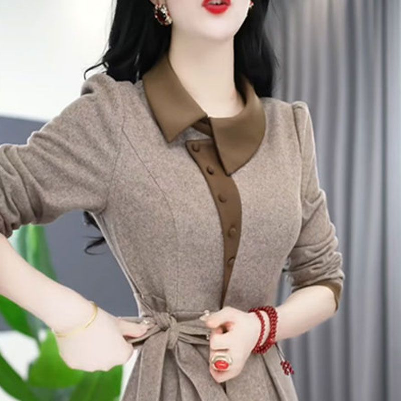 A摆针织连衣裙 撞色刺绣假两件坎肩长袖 BANANA CICI2025年秋冬新款