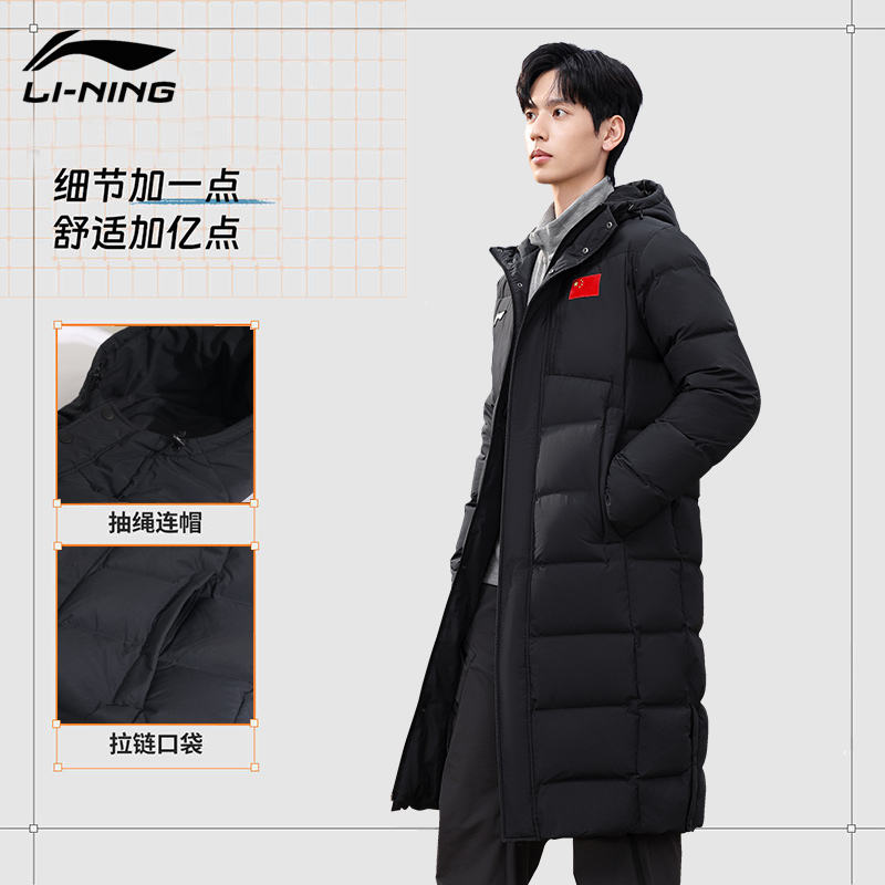衣服官方保暖上衣连帽运动外套 鸭绒长款 李宁火锅羽绒服 女冬季