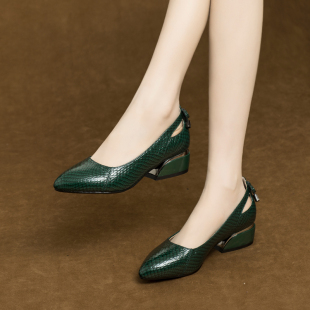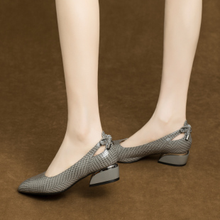 软皮不累脚女士中跟真皮鞋 2025新款 尖头气质粗跟浅口单鞋 女鞋 秋款
