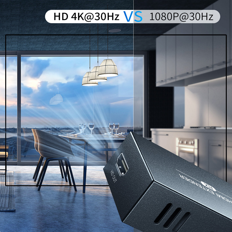 品为hdmi延长器4K 30HZ高清转rj45网口网线网络信号放大器100米无损传输单poc单电源供电智能学习EDID功能