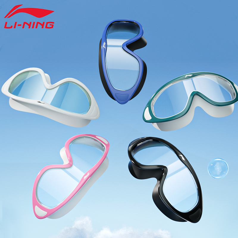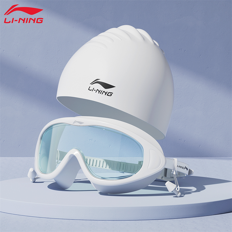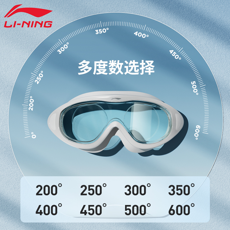 李宁近视泳镜防水防雾高清大框度数游泳眼镜男女士潜水款 泳帽套装