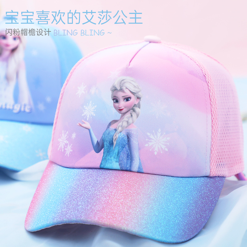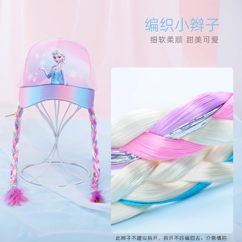 迪士尼艾莎儿童帽子女童帽子夏季 宝宝遮阳帽防晒帽太阳帽女孩辫子