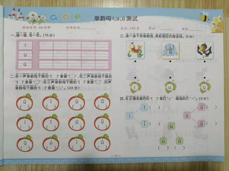 幼小衔接冲刺100分学前测试卷拼音1 幼儿园大班学前班幼升小学一年级练习册幼小衔接测试卷 单韵母声母大卷子名牌小学入学整合教材