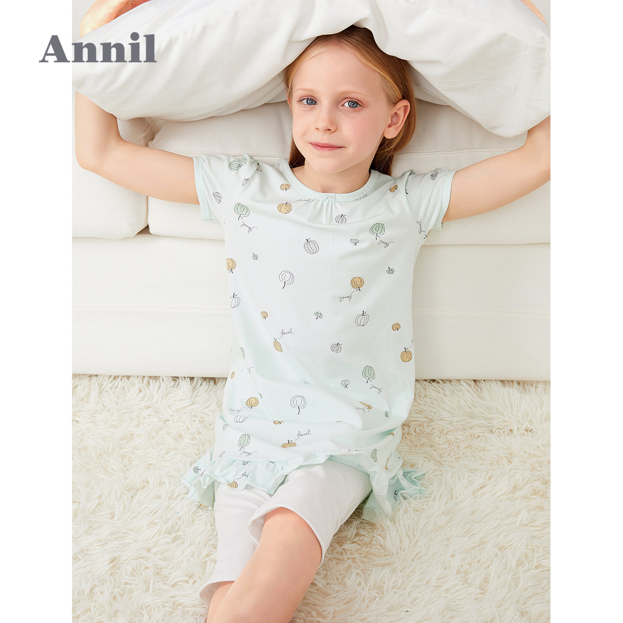 七分裤 睡裙 夏季 款 安奈儿女童装 清新印花薄家居服套装 短袖