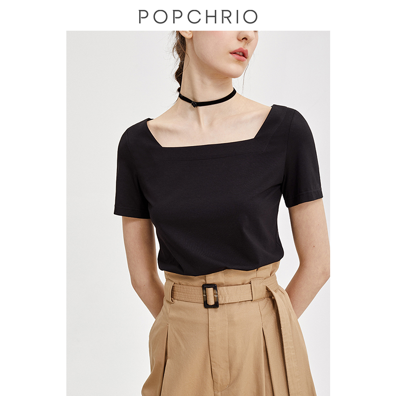修身 打底衫 百搭上衣服 T恤女春秋内搭短款 设计感小众正肩纯棉长袖