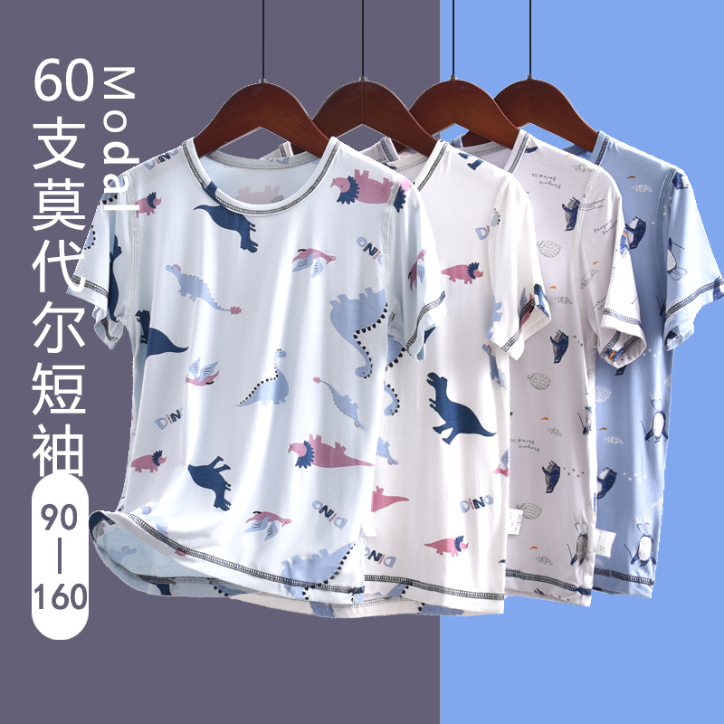 男童男孩家居空调服宝宝睡衣 薄款 60支莫代尔儿童短袖 T恤上衣夏季