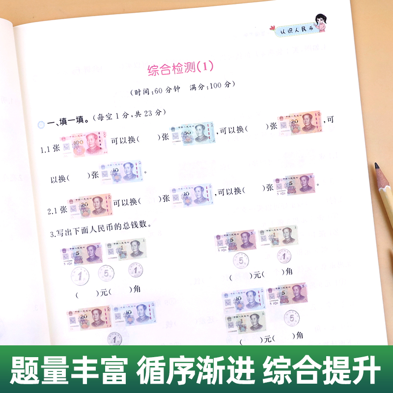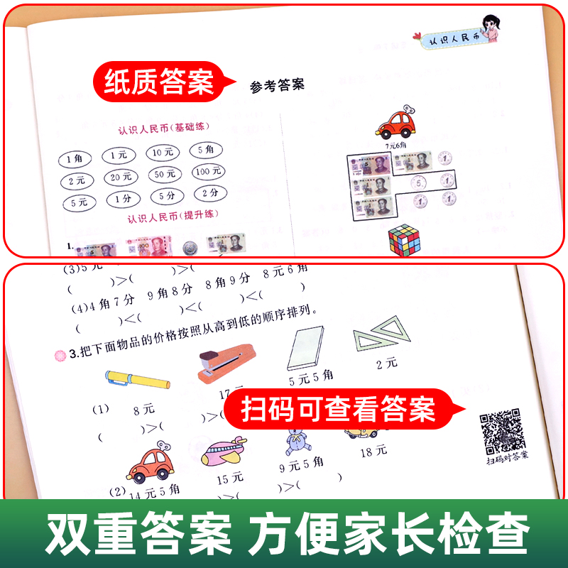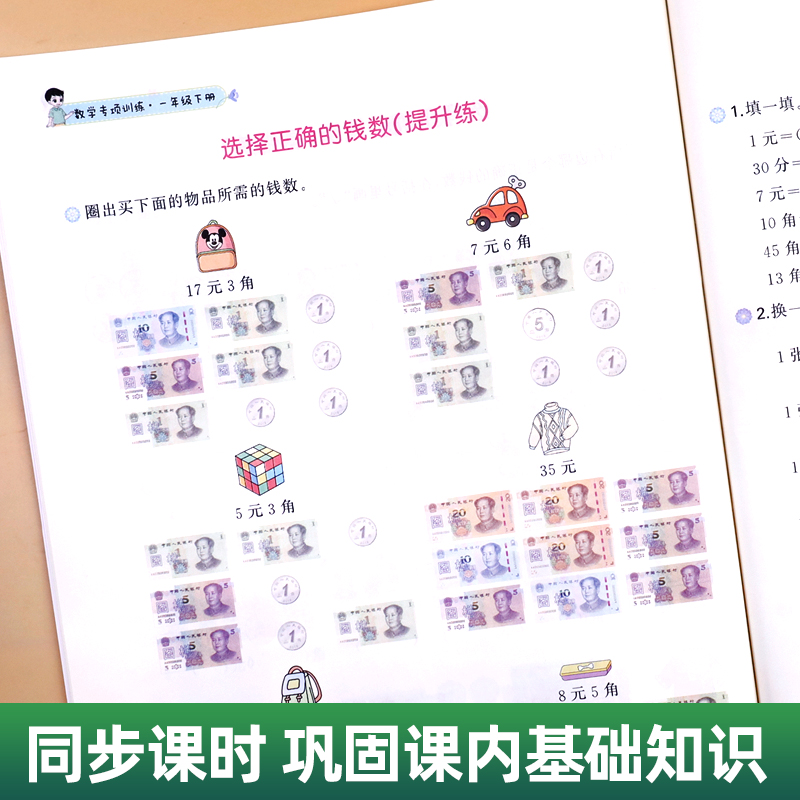 2025认识人民币练习册一年级数学思维训练下册练习题1年级下学期人教部编版 人民币换算教具同步练习册应用题专项训练100以内加减法