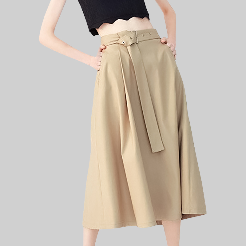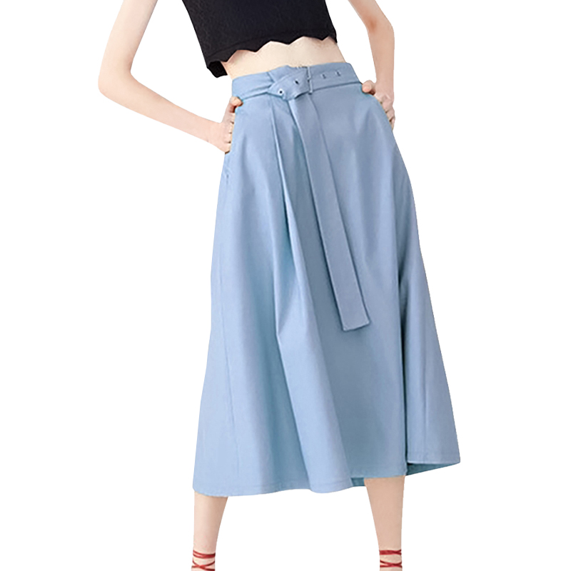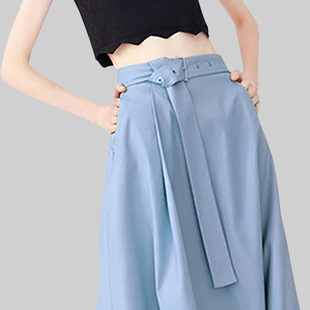 高腰A字气质半身裙女2025年夏新款 女神范系带收腰显瘦大摆a字裙子