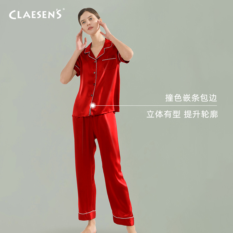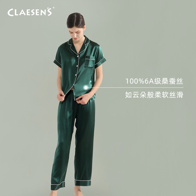 蚕丝套装 长裤 高级感丝绸家居服 短袖 荷兰Claesens真丝睡衣女薄款
