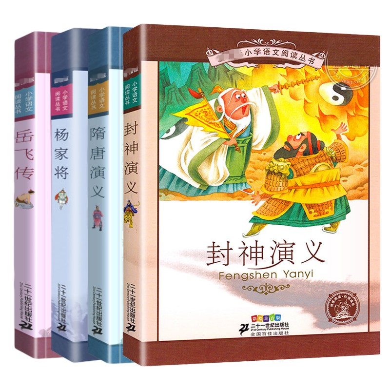 书全套4册名著小学生版 一二三年级课外书bi读阅读书籍 杨家将青少年版 儿童故事书注音版 书 带拼音 封神演义岳飞传隋唐演义正版