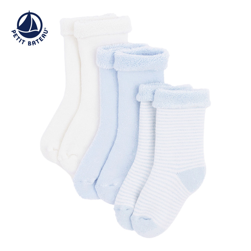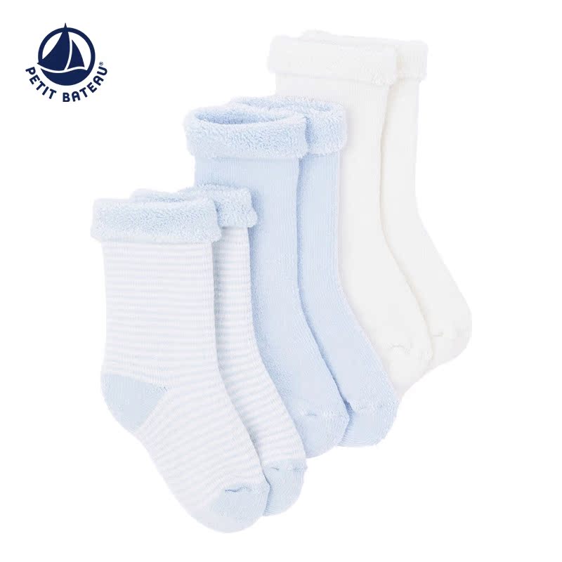 Petitbateau小帆船法风秋冬女婴宝宝婴儿短袜3双套装 A01FK