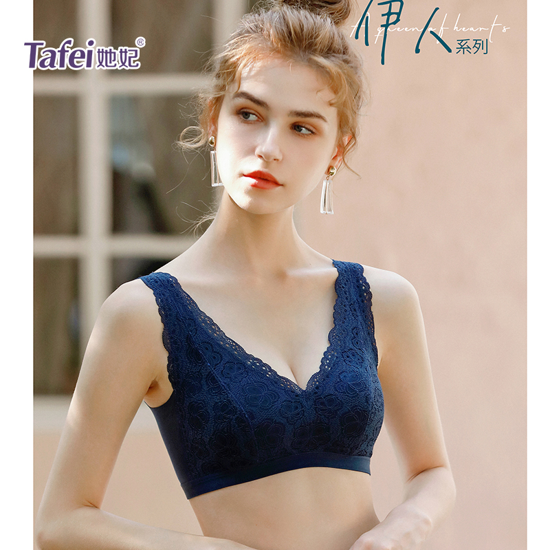 她妃内衣女薄款 无钢圈小胸聚拢宽肩带美背蕾丝大胸显小舒适性胸罩
