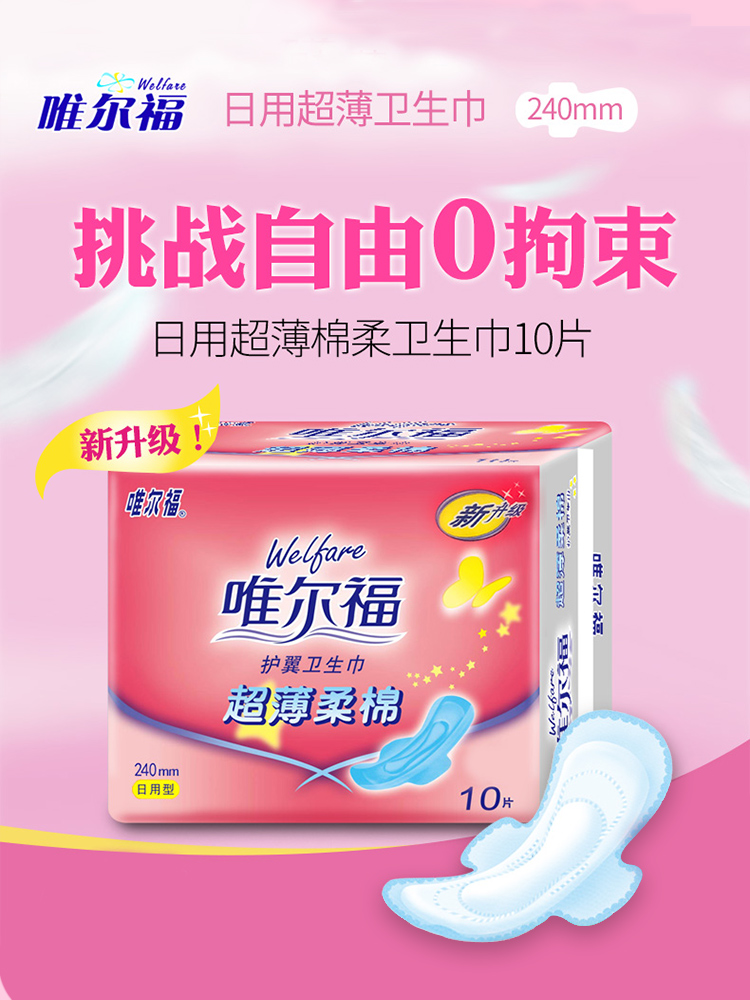唯尔福卫生巾超薄棉柔护翼防漏日用卫生巾240mm10片装
