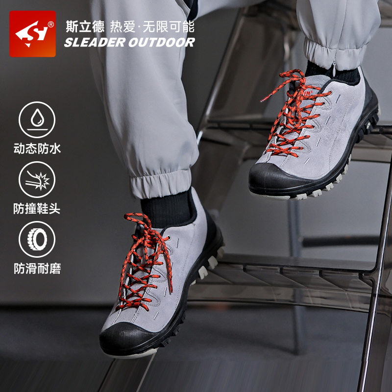 情侣越野跑鞋 男女革面防泼水防滑运动鞋 户外登山徒步鞋 安踏探山