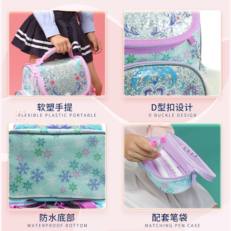 疯狂 麻麻女童背包冰雪公主小学生一到三年级女轻便护脊儿童书包
