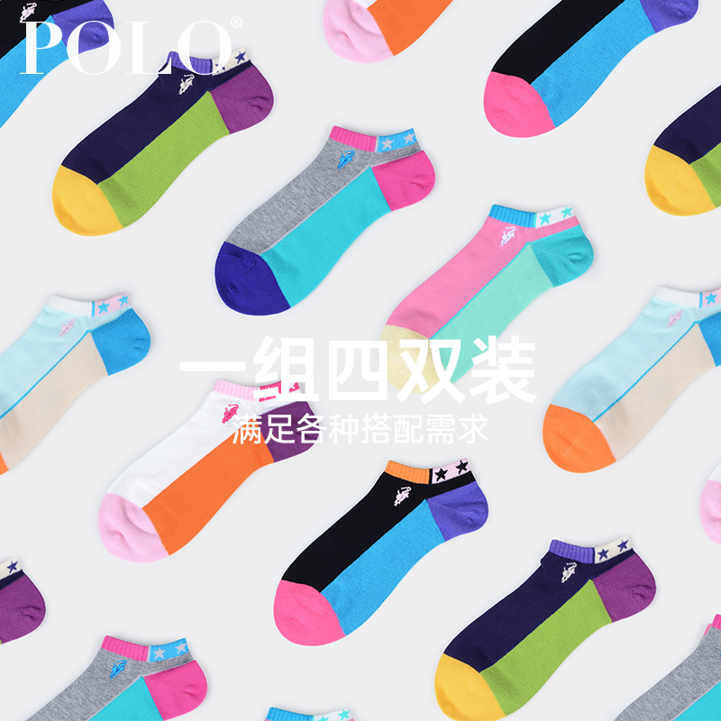 Polo袜子女夏季 女袜浅口隐形女袜 糖果纯色薄棉短筒短袜潮ins个性