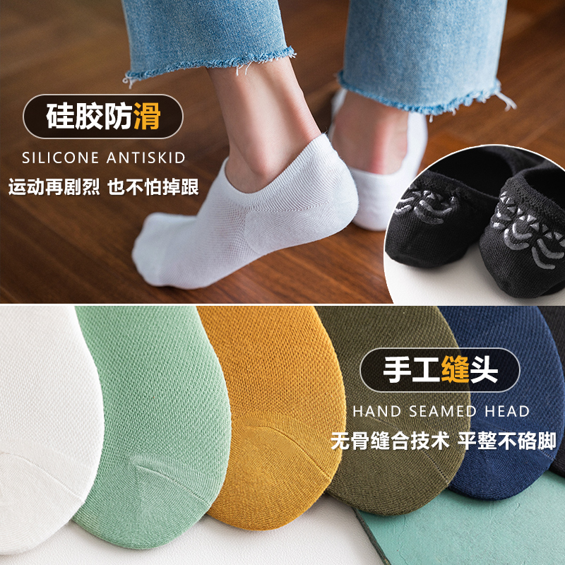 船袜 浅口男士 袜子男短袜纯色棉底隐形防臭吸汗防滑透气夏季 薄款