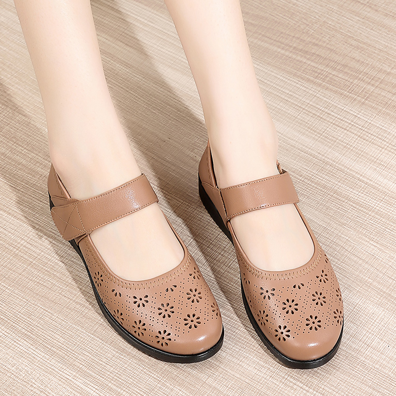 中老年洞洞鞋 织丽妈妈凉鞋 真皮奶奶女鞋 平底镂空中年老人鞋 女夏季