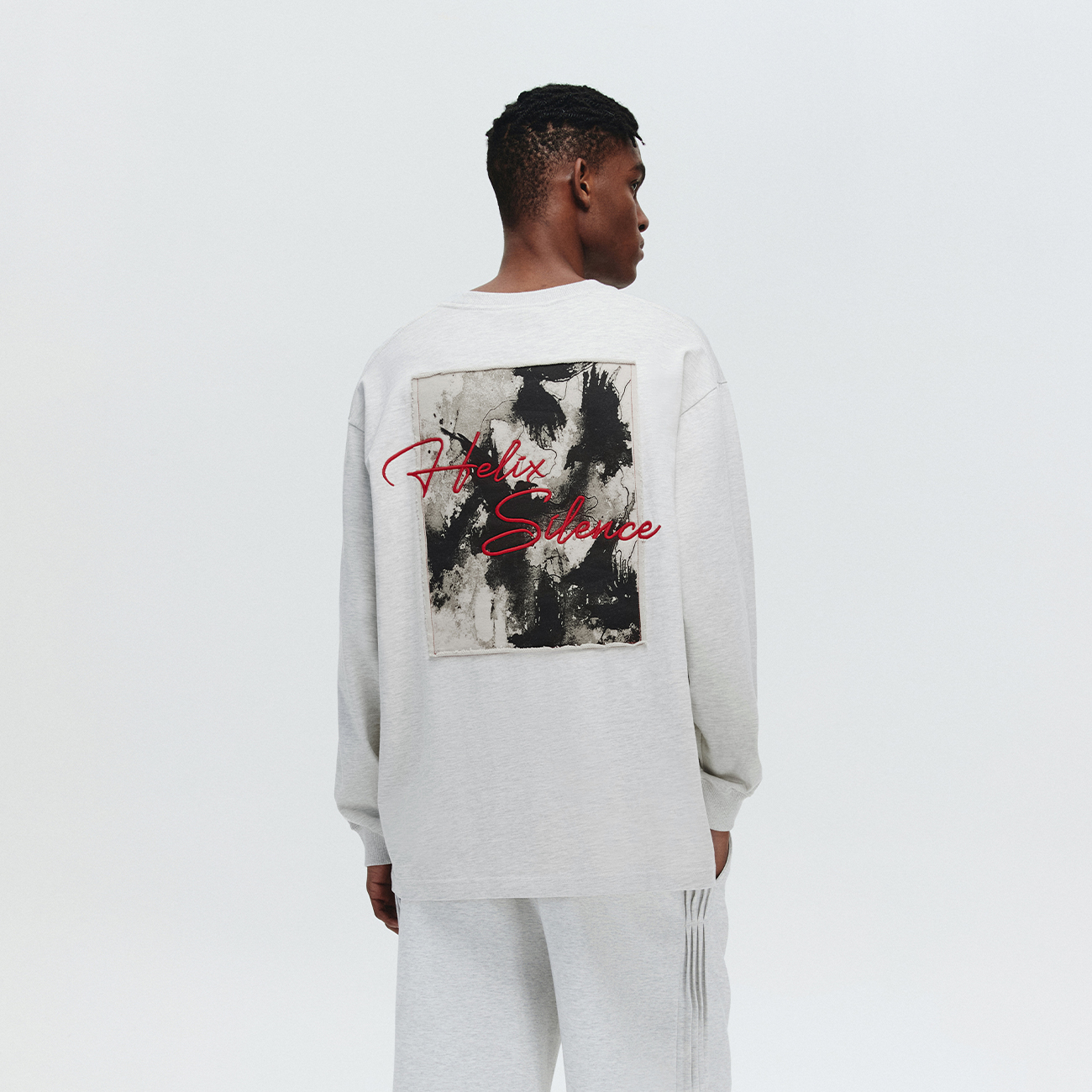 ATRY泼墨贴布系列花体刺绣长袖 国潮牌小众高街重工宽松T恤 春秋季