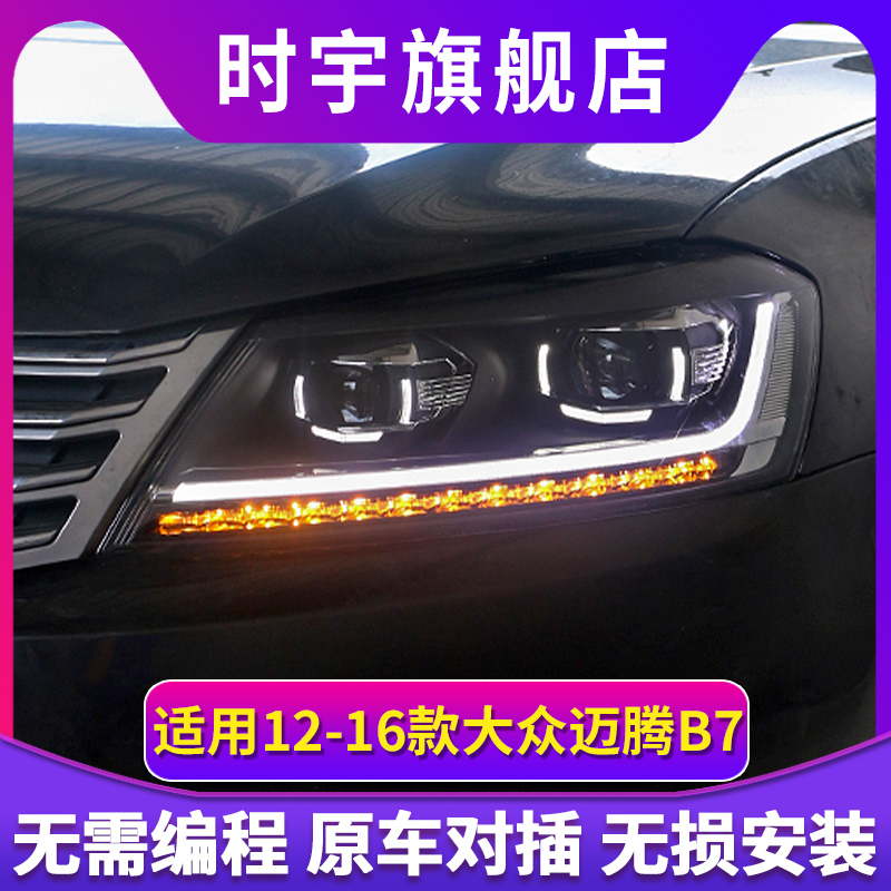 迈腾B7改装 16款 LED日行灯双光透镜led激光大灯总成 迈腾大灯