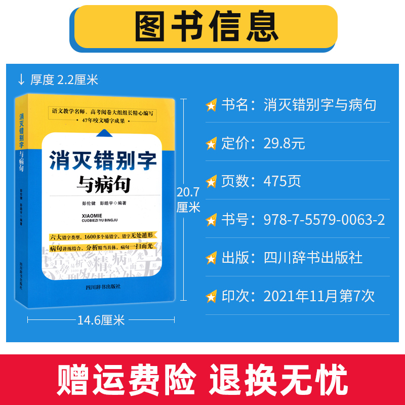 消灭错别字与病句全国通用版 初中高中语文修改病句专项训练错别字高效纠错手册形近字多音字同音字易错易混字病句修改语病辨析
