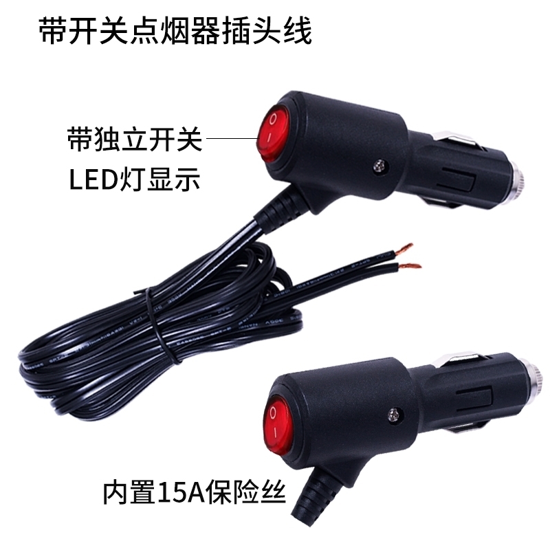 带灯带开关汽车点烟器插头车载电器风扇电源延长线12V24V通用