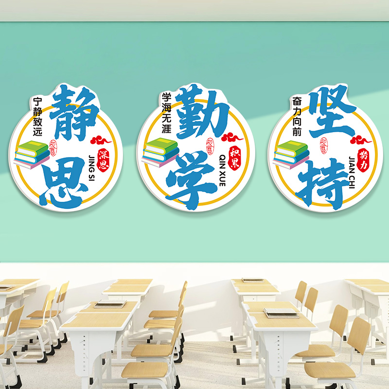 小学教室布置装 饰3d立体墙贴学生励志标语初高中班级文化楼梯挂画