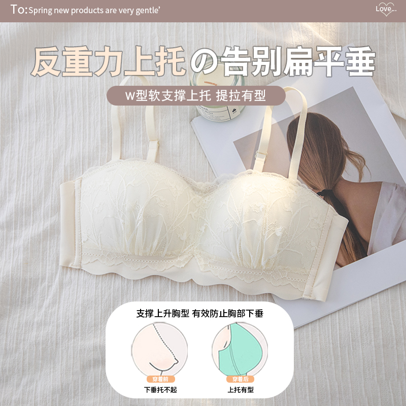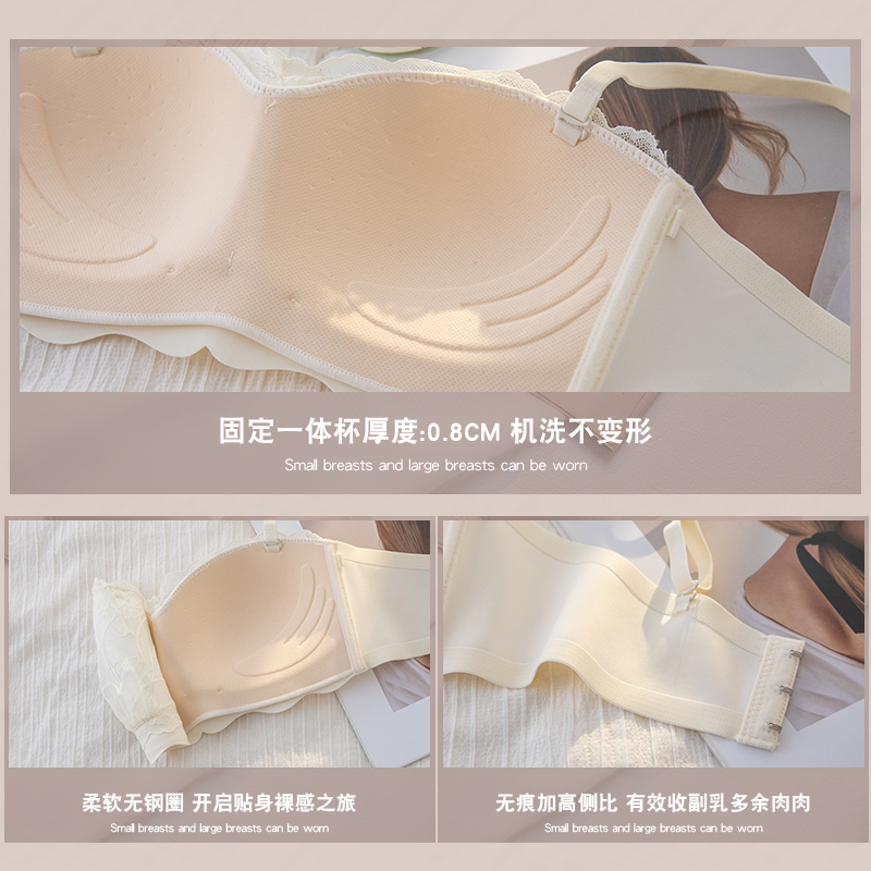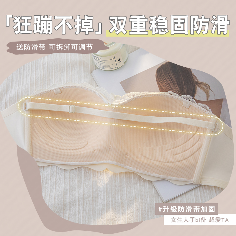 调整型 大胸显小抹胸裹胸文胸罩套装 美背无肩带防滑夏季 内衣女薄款