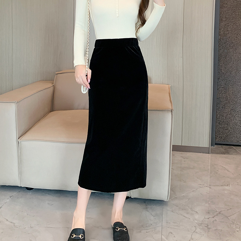 时髦丝绒鱼尾裙女MOFAN2025冬可可棕高腰半身裙显瘦 双11预售