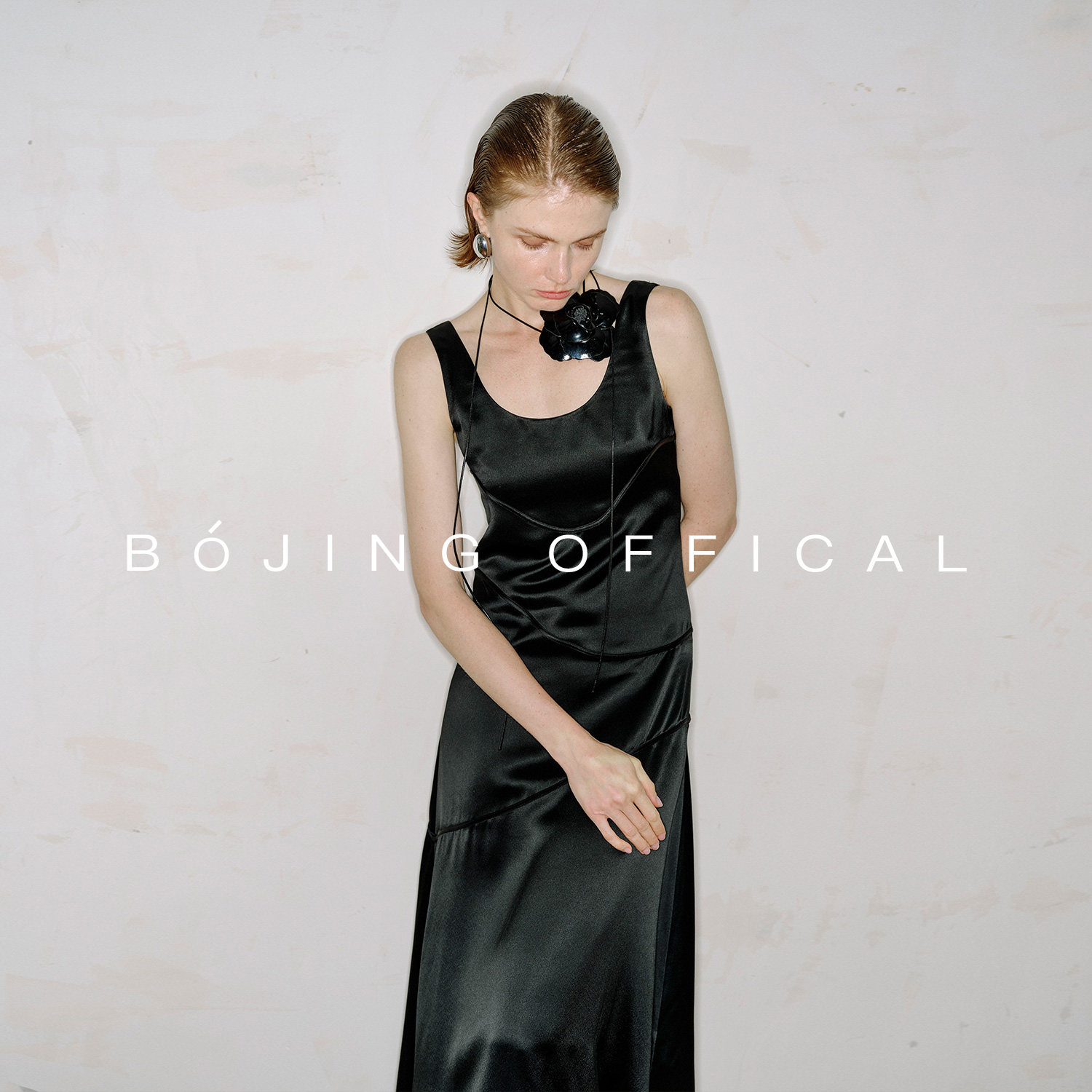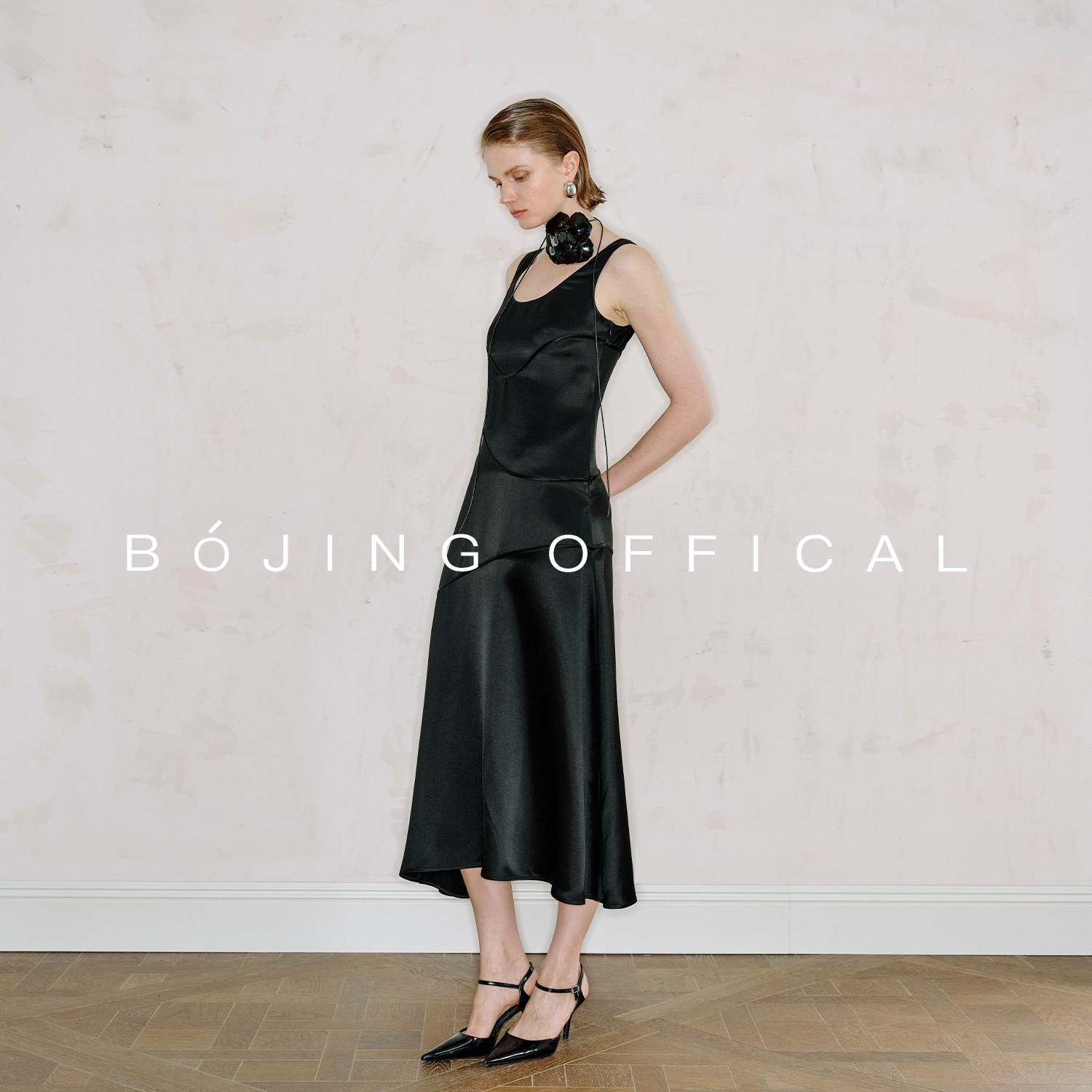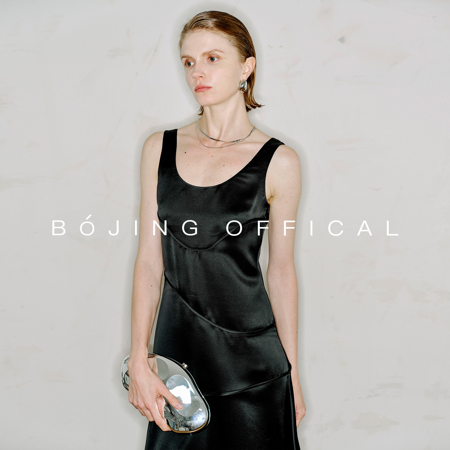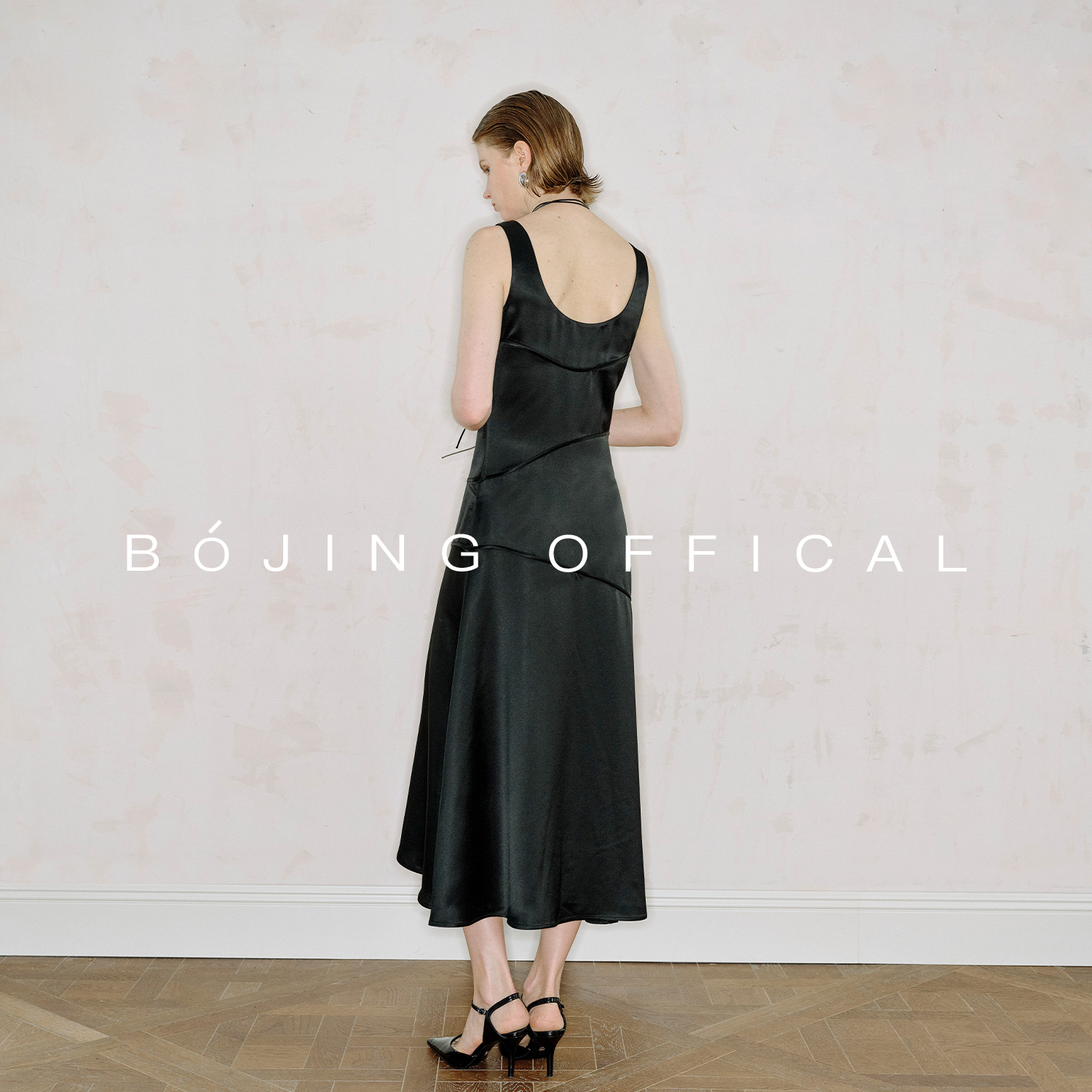 泊境BOJING灵动呼吸感高阶轻奢醋酸垂坠清凉U领波浪摆无袖 连衣裙