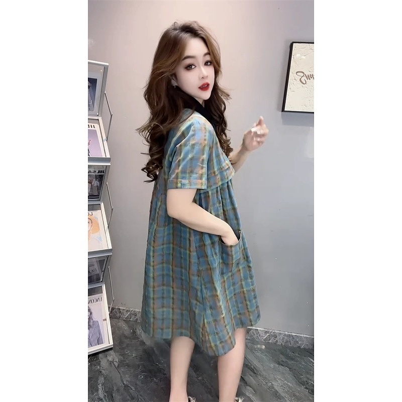 衬衫 2024夏季 韩版 气质中长款 连衣裙女减龄洋气休闲格子a字裙 新款