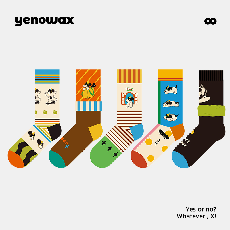 YNWX可爱小狗系列卡通袜子女四季 轻薄透气可爱百搭中筒袜子 常规款
