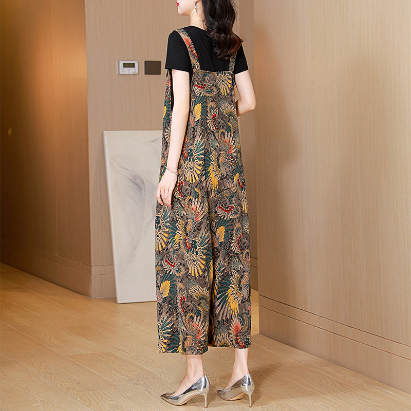 宽松显瘦气质休闲阔腿背带裤 新款 裙 女2025夏季 天丝印花吊带连体裤