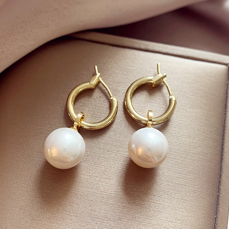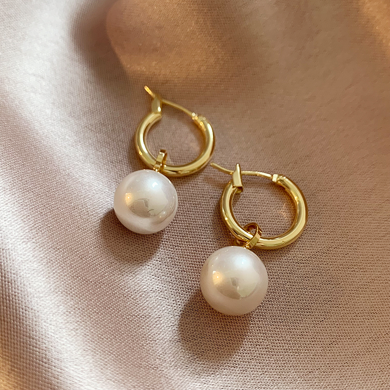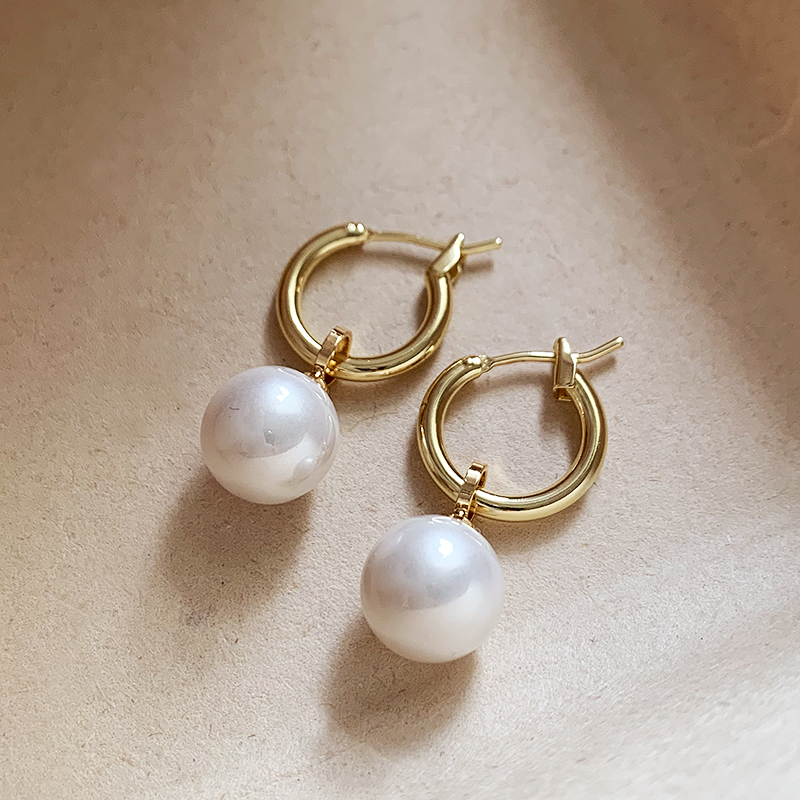 阿吉豆耳钉女S925银针2025新款 正圆大珍珠耳扣耳环轻奢耳饰品 爆款