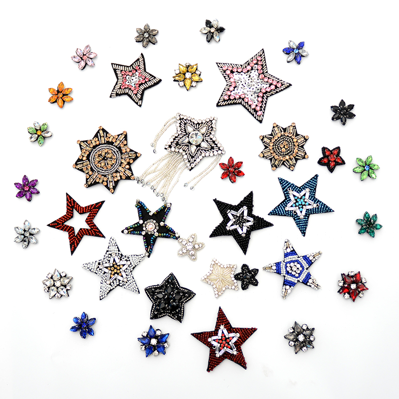 饰品辅料 帽包包贴花装 手工钉珠五角星形八角星水钻布贴diy服装 鞋