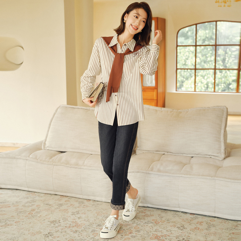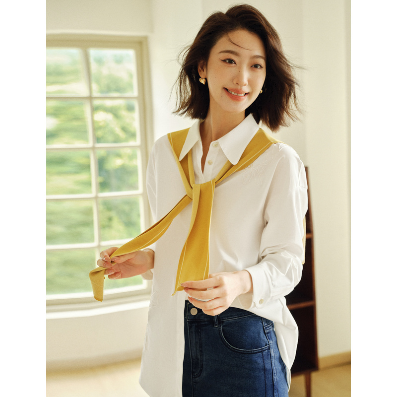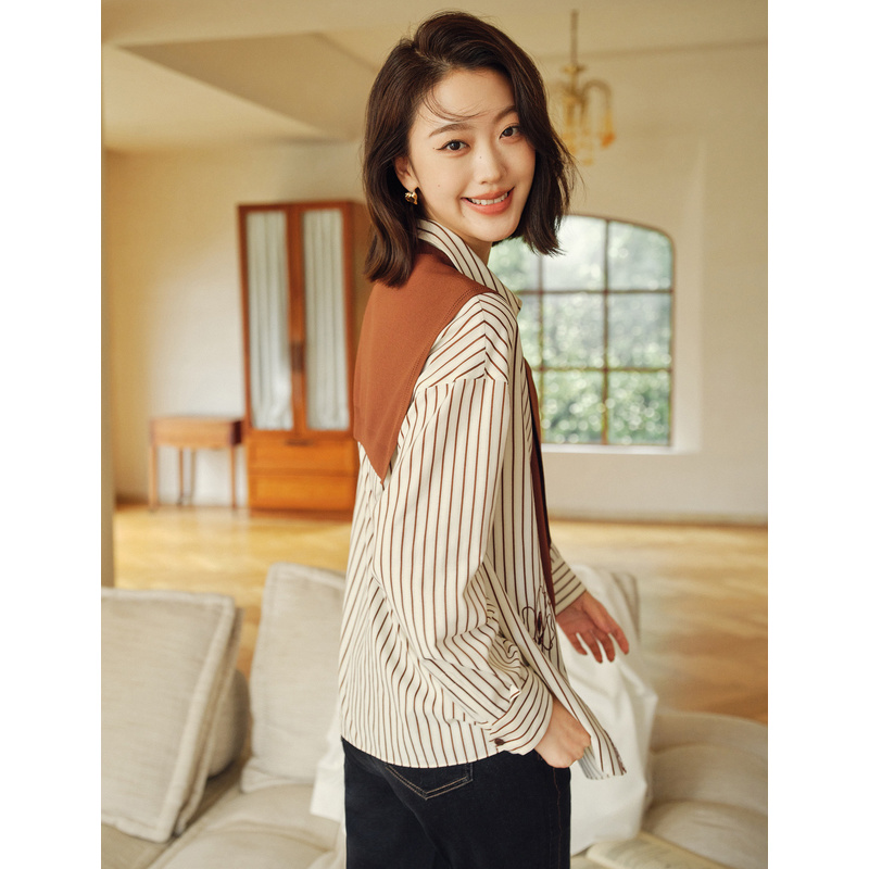 商场同款 新款 配披肩长袖 女上衣秋季 衬衫 ELSEWHERE珂思