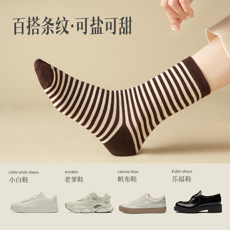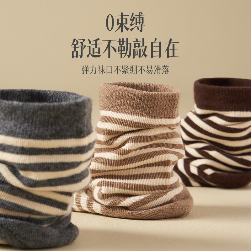 堆堆袜女秋冬季 咖色中筒袜ins潮保暖厚袜子外穿无骨袜 黑白条纹款