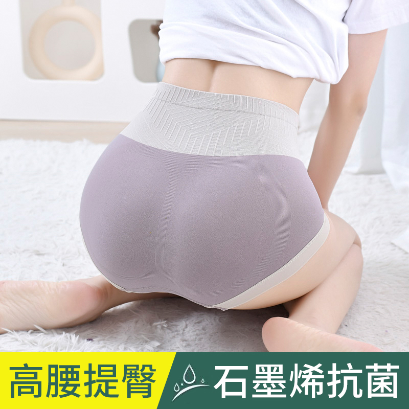 女士高弹石墨烯抗菌纯棉裆三角裤 无缝高腰收腹大码 无痕提臀内裤