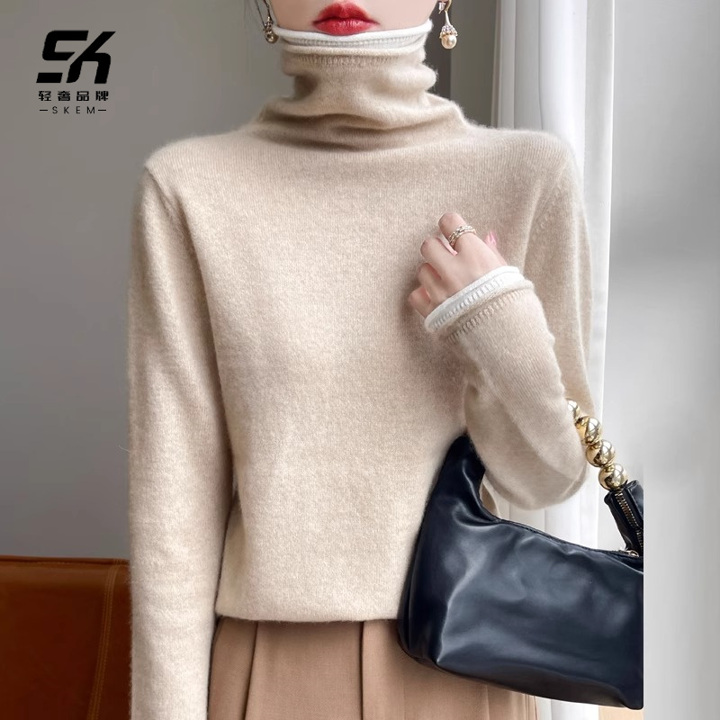 秋冬羊毛黑色内搭修身 2025新款 毛衣上衣 女半高领打底衫 猫人针织衫